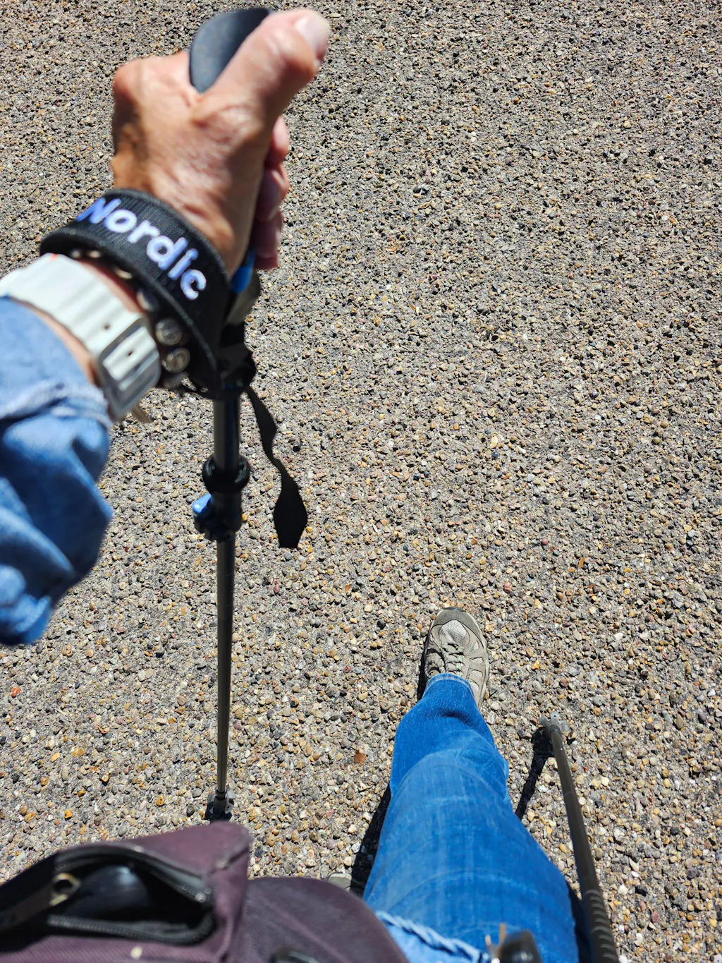 Love to walk and love to travel? Looking for the additional stability and balance provided by the Motivator grip? Then these poles are for you. The team at York Nordic has created these travel poles for the busy traveler and they are now available with the Motivator grip. The poles detach to just 13.5 inches and include a slick sling bag for storage/travel and one set of lanyard adjustable wrist straps that easily slide onto York Nordic Motivator walking poles. Adjustable to fit heights 4’ to 7’ tall!